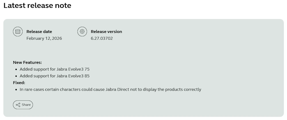 Today I have received a notification, that there is a new Jabra Direct release available.